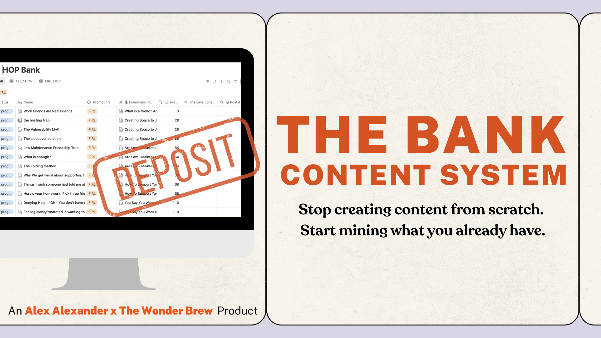 The Bank Content System helps you capture, organize, and reuse your brilliance — so your best ideas never get lost again.